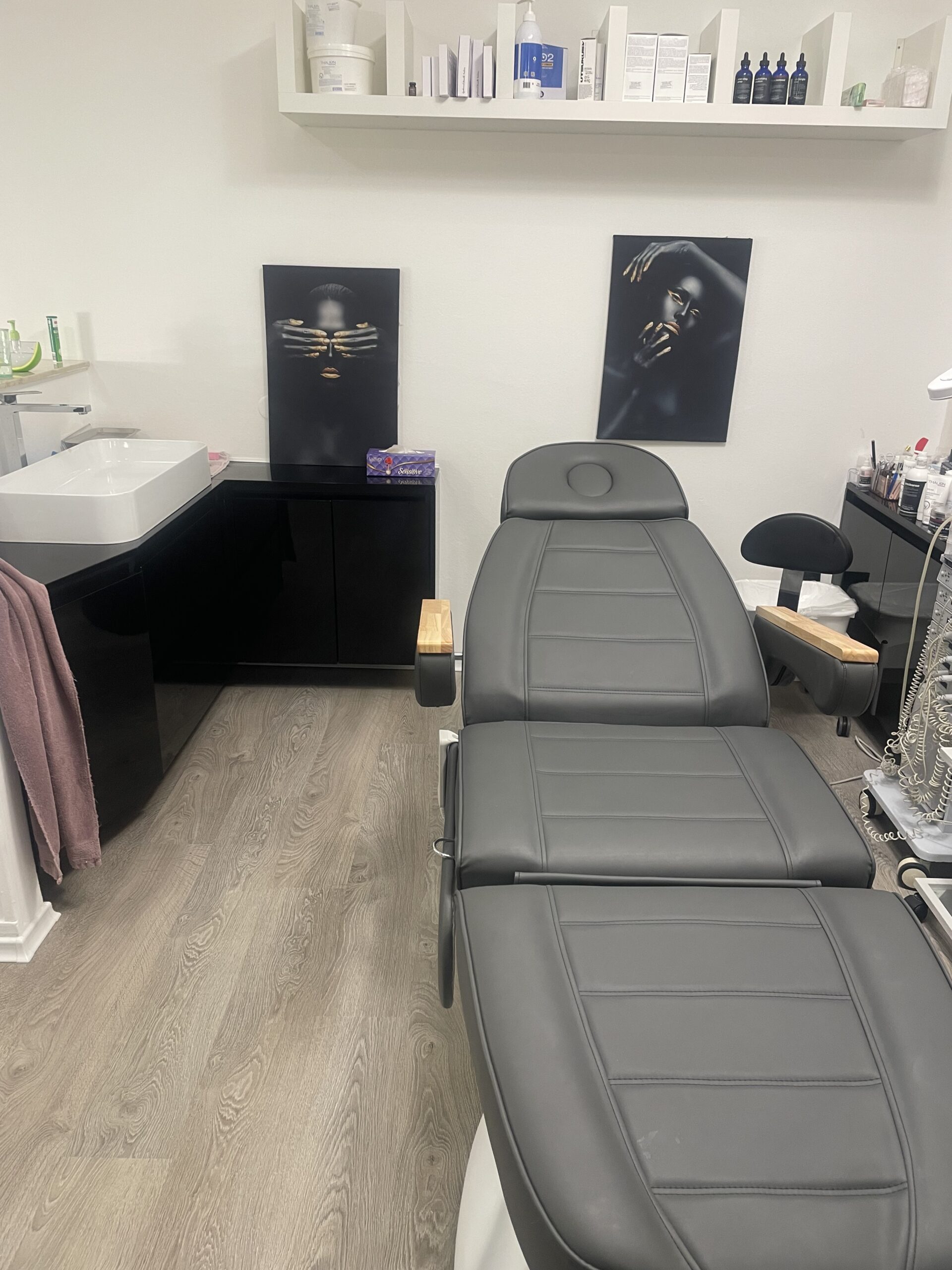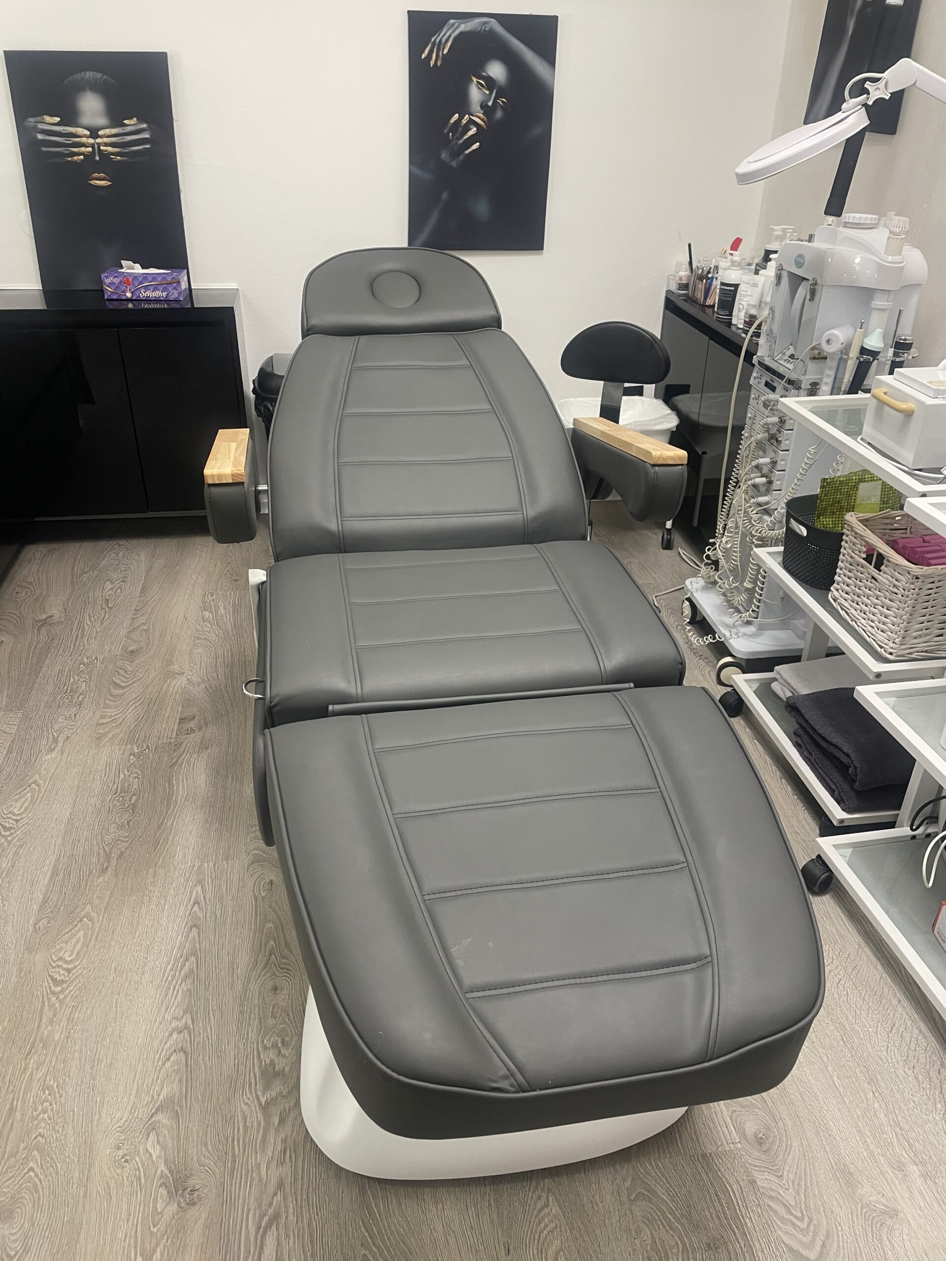 Naslon za glavo je izvlečen, kar omogoča prilagoditev uporabnikom različnih višin in zagotavlja stabilno oporo glave med tretmaji. V naslonu za glavo je luknja, skrita z vložkom, stol pa se lahko raztegne v popolnoma ležeč položaj. To znatno poveča funkcionalnost pri storitvah za obraz in telo, kot so kozmetični tretmaji, fizioterapija ali tetoviranje. Uporabljene rešitve znatno izboljšajo udobje in ergonomijo dela.