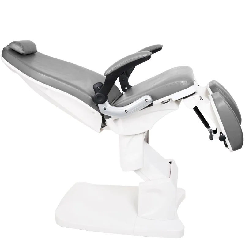 Sodoben kozmetični stol, ki zagotavlja udobje med zdravljenjem ne le pacientom, temveč tudi osebam, ki izvajajo zdravljenje. Idealen za podiatrične ordinacije, opremljen z elektromotorji, ki omogočajo hitro in priročno nastavitev stola.  ° Nasloni za noge, nameščeni ob straneh. Naslanjači so trpežni in zelo stabilni. Zahvaljujoč dvignjenim naslonom za roke je stranki lažje sedeti na sedežu. Nastavitev naslonov za noge omogoča dodatno prilagoditev stola individualnim potrebam. Oblazinjenje iz visokokakovostnega eko usnja. Naslanjači so na voljo v široki paleti barv. Sodoben dizajn in funkcionalnost v enem. Fotografija prikazuje model v sivem odtenku.