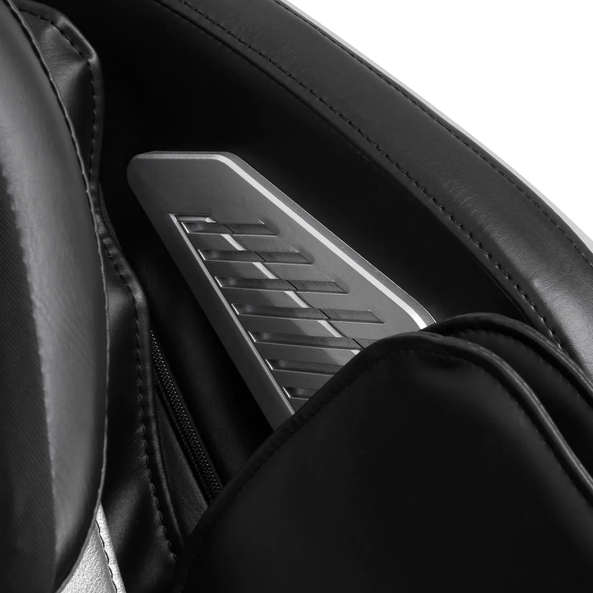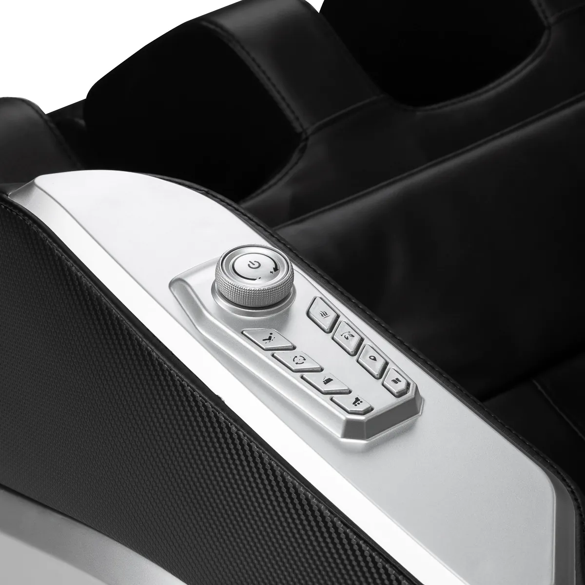 Za še večje udobje je stol opremljen z dodatnim nizom kontrolnih gumbov, ki se nahajajo na levem naslonu za roke . Vgrajen priročen upravljalnik omogoča hiter dostop do najpomembnejših funkcij, ne da bi se moral dotakniti glavne plošče . Uporabnik lahko preprosto spremeni vrsto masaže, zažene masažo stopal in aktivira funkcijo Zero Gravity – vse z mislijo na maksimalno udobje in sprostitev.