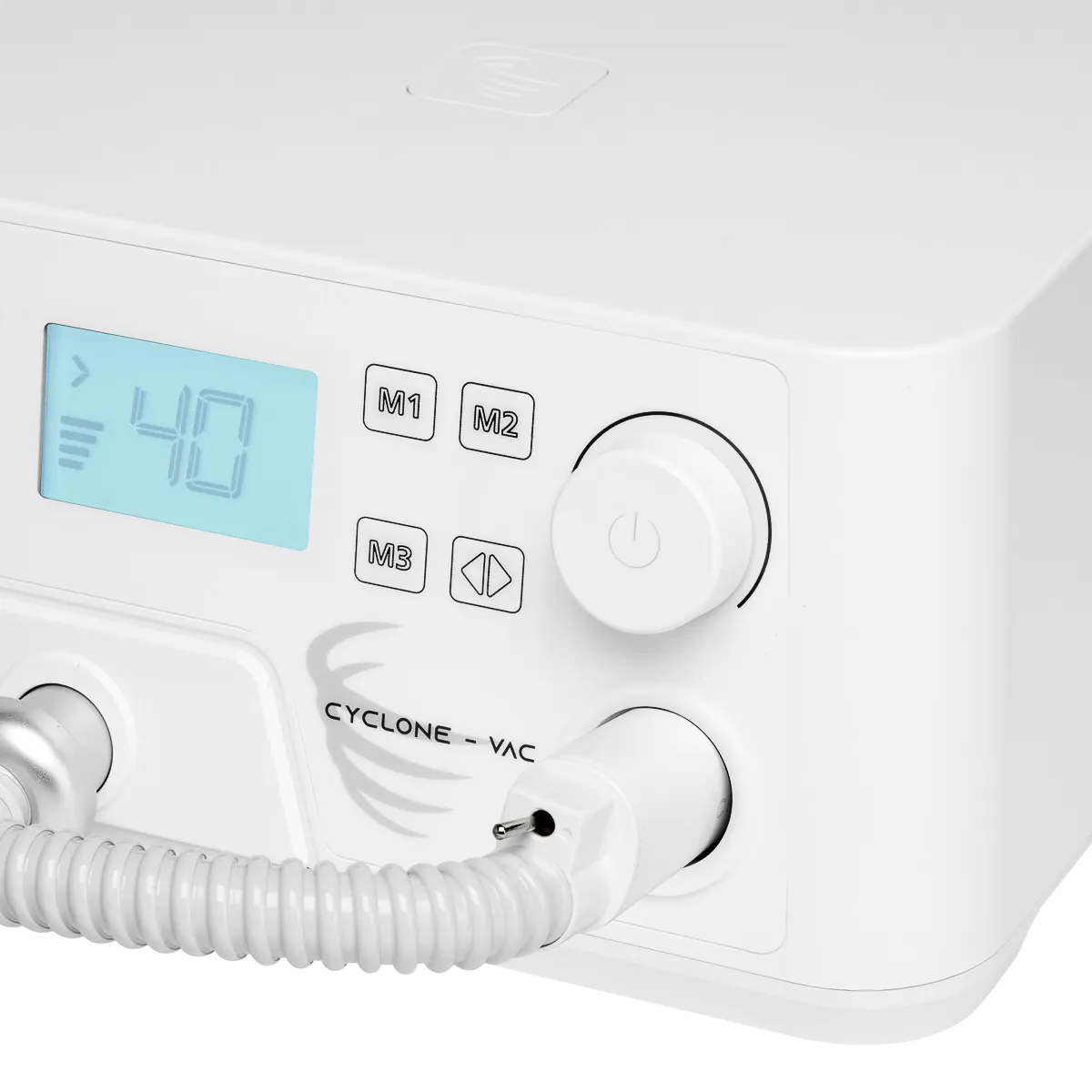 Saeyang Marathon Cyclone-Vac – visokokakovostni podološki brusilnik s sesalcem – je specializirana naprava, ki omogoča visoke higienske standarde v salonu ter učinkovito ščiti zdravje izvajalca in stranke. Profesionalni brusilnik je zasnovan predvsem za suho pedikuro v podologiji, vendar je odličen tudi za manikiro. Učinkovita glava s sesalcem in intuitivno delovanje močno izboljšata delo podologa ter olajšata izvedbo širokega spektra tretmajev.